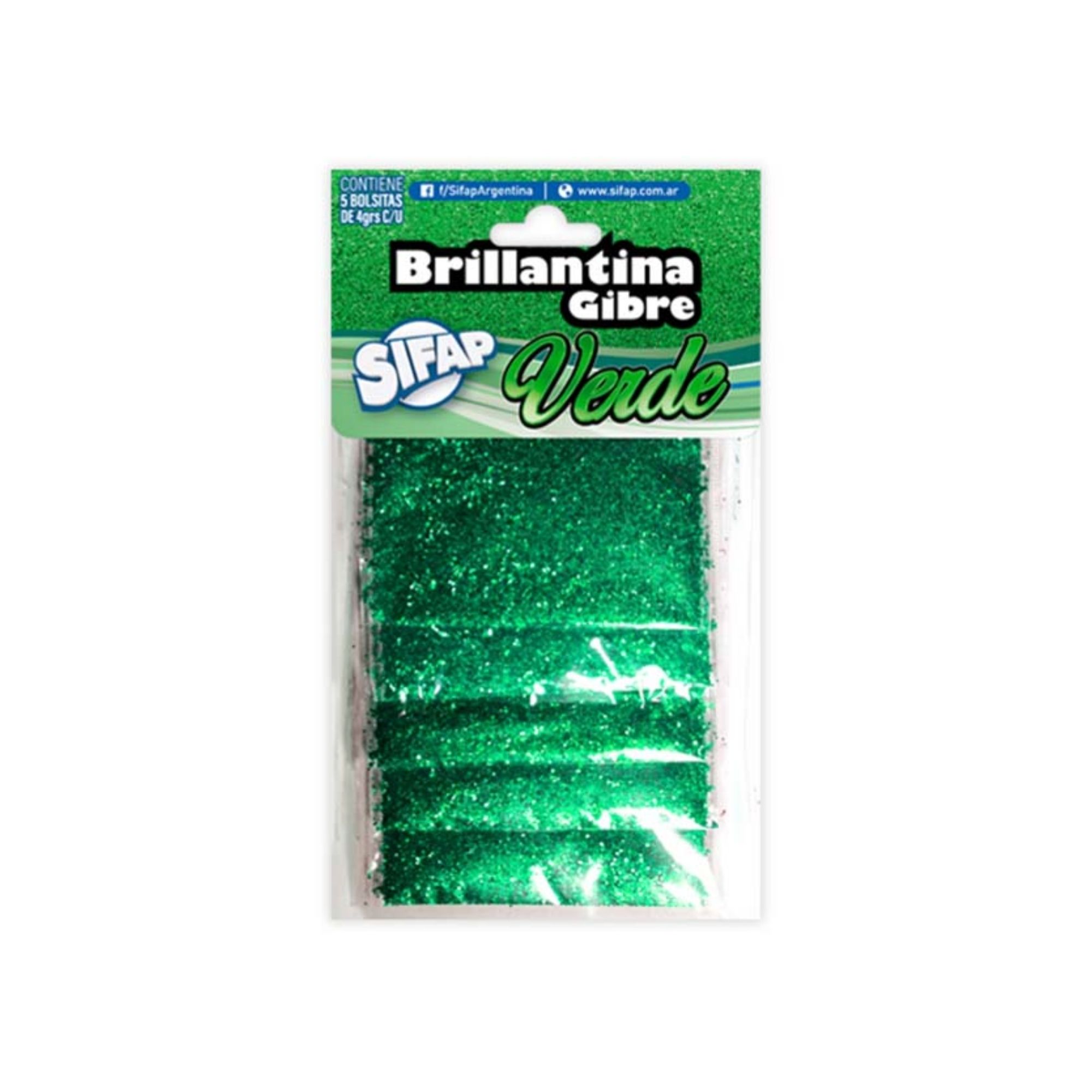 Brillantina color verde x5 - Sifap cantidad