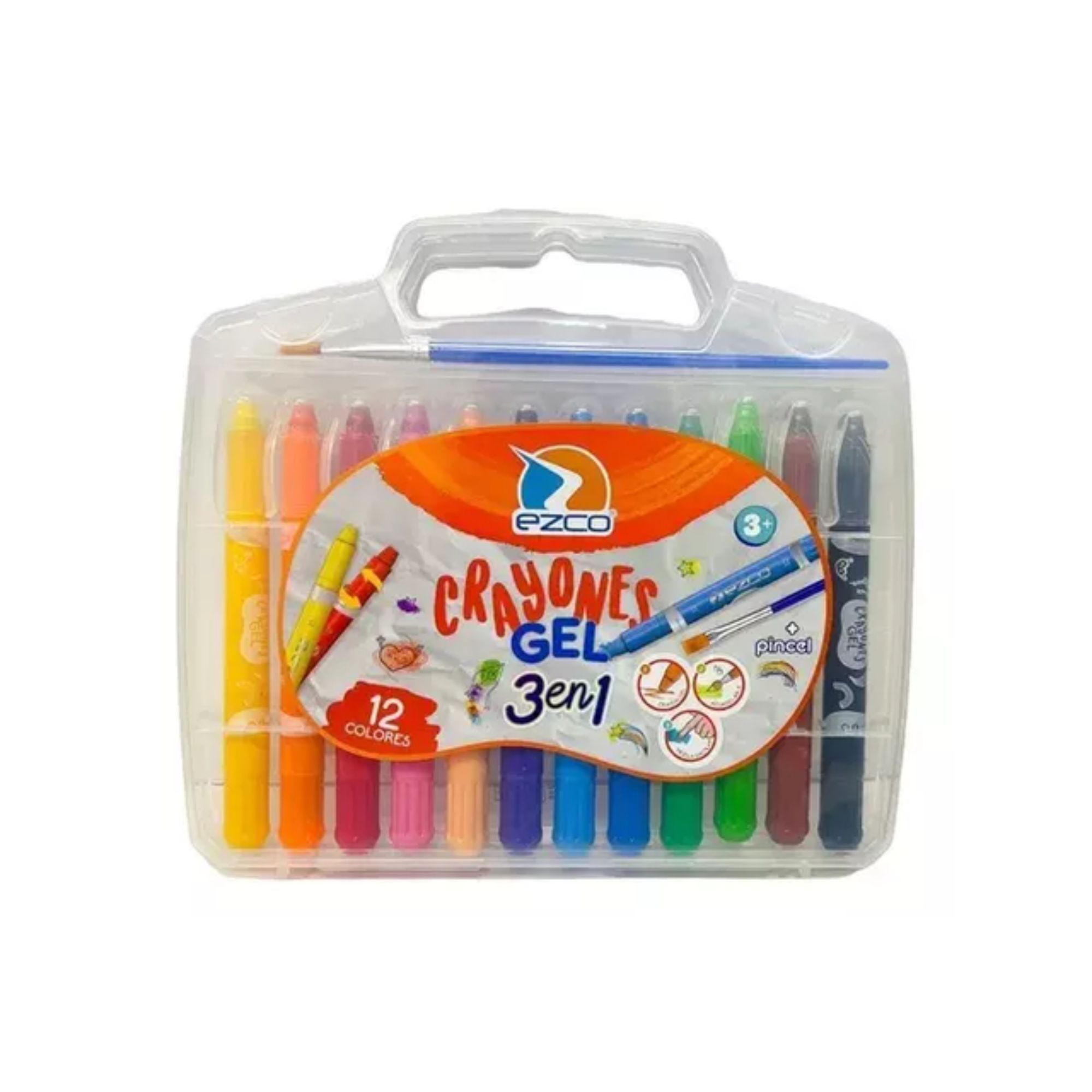 12 crayones de gel Ezco de colores + pincel
