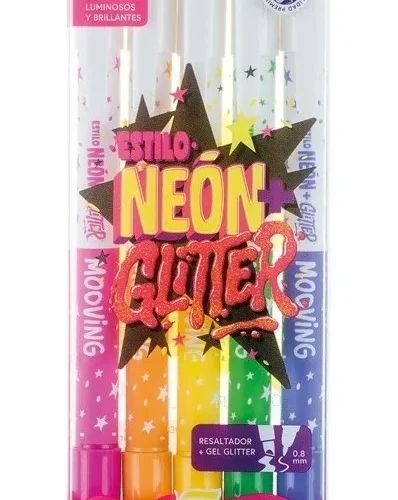 Resaltadores y Roller gel Estilo neon Glitter x5 – Mooving